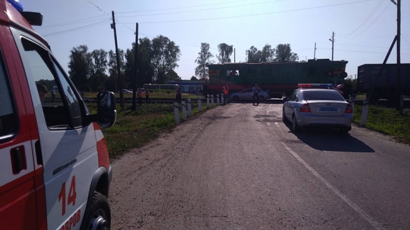 Столкнулись маневровый тепловоз и легковой автомобиль марки Mitsubishi. На место незамедлительно выехали подразделения МЧС и патруль ГИБДД.