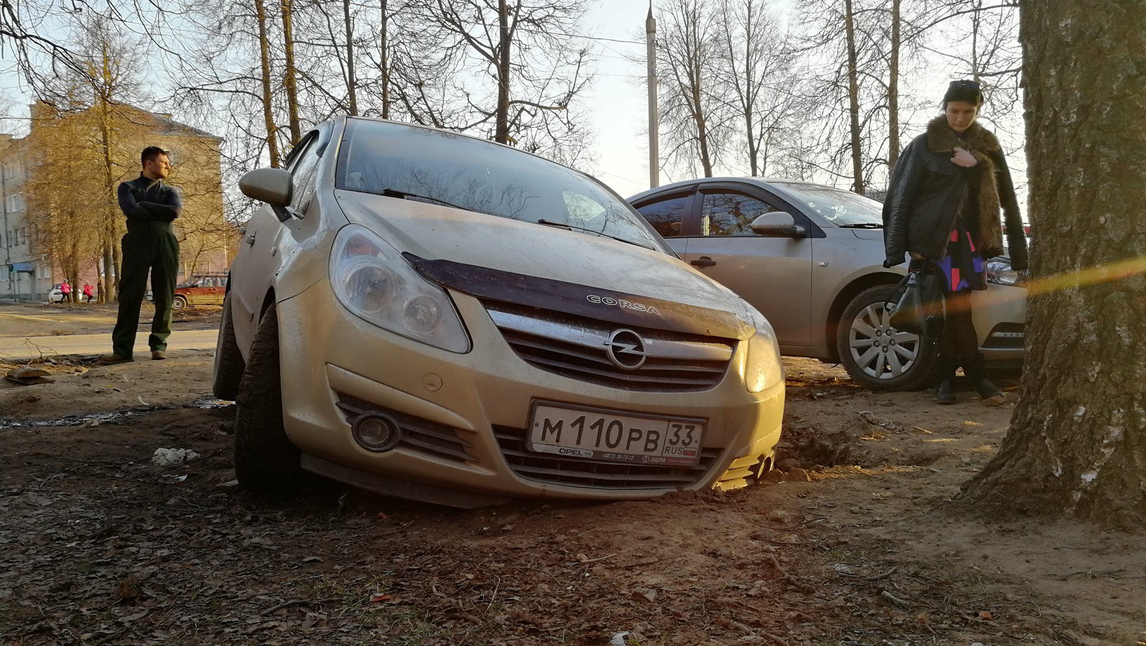 Весенние проталины по-ковровски — это вам не крокусы и подснежники! Сегодня Виола Н., владелица автомобиля, обнаружила свой Opel-Corsa частично погружённым в недра.