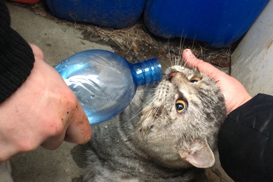 … Во время тушения огня и проведения аварийно- спасательных работ во второй половине дома пожарные нашли кота. Он надышался угарным газом и почти не шевелился. Пожарные дали коту кислород из дыхательного аппарата, отпоили его водой и вернули хозяевам. К моменту отъезда пожарных кот Тайсон пришел в себя.