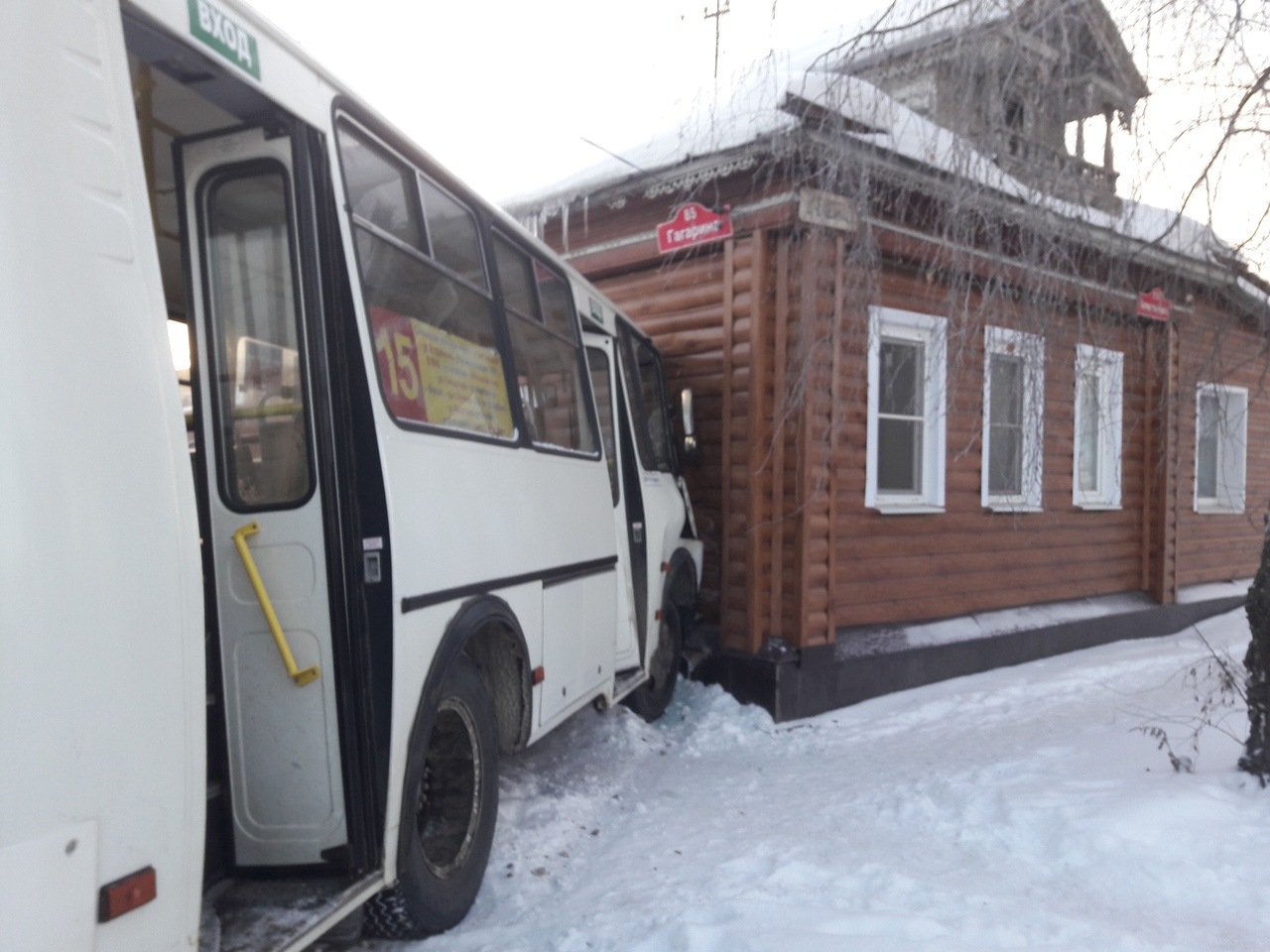 Маршрутка № 15 въехала в стену дома в результате ДТП.