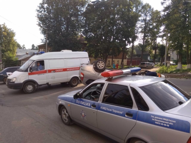 Сегодня утром в Коврове перевернулась легковушка. Авария случилась на улице Абельмана.