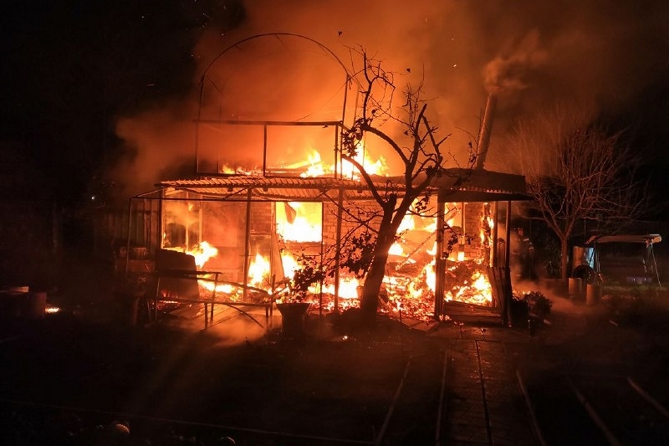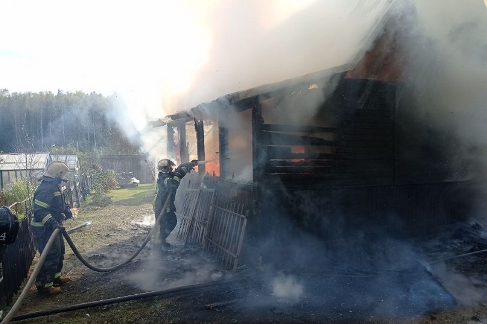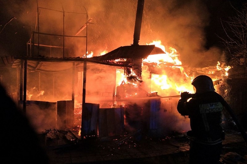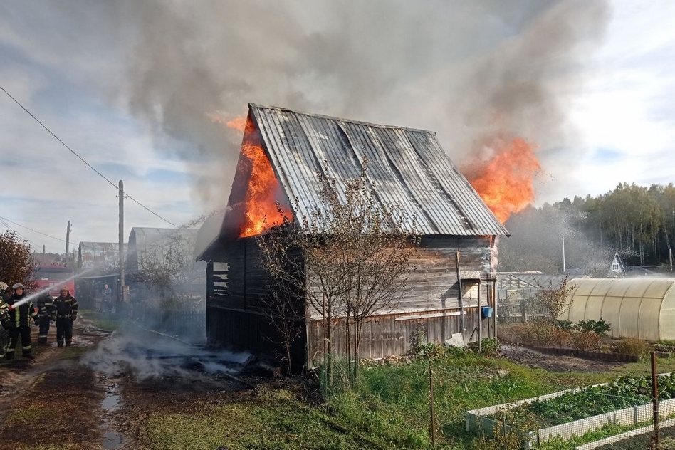 А 7 октября в 01:51 вновь поступило сообщение о пожаре в СНТ № 4 КМЗ. И снова горела дача. К моменту прибытия двухэтажное строение полыхало целиком.