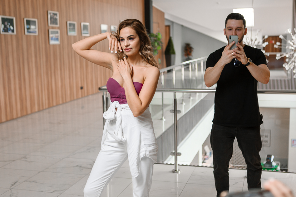 Ведущая проекта строго следила за таймингом, разрешая красавицам всего две минуты на то, чтобы «выдать», по их мнению, выигрышные ракурсы и сюжеты. К тому, куда девать руки, девочки явно подготовились – погуглили тему, порепетировали перед зеркалом, да и предварительный мастер-класс не прошёл даром. А вот с масками получился «нежданчик»: как сделать так, чтобы выгодно демонстрировать и аксессуар, и маникюр, и себя? В ход пошла стихийная импровизация.