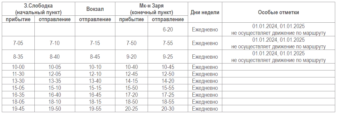| Маршрут №9 | Вокзал – мк-рн Заря – Вокзал |