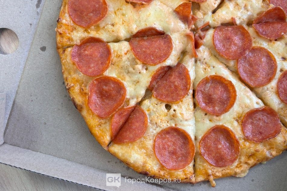 Соответствие пиццы фото на сайте: не совсем. На картинке колбаса сорта «пепперони» полностью закрывает лепёшку. В действительности её почти вполовину меньше.