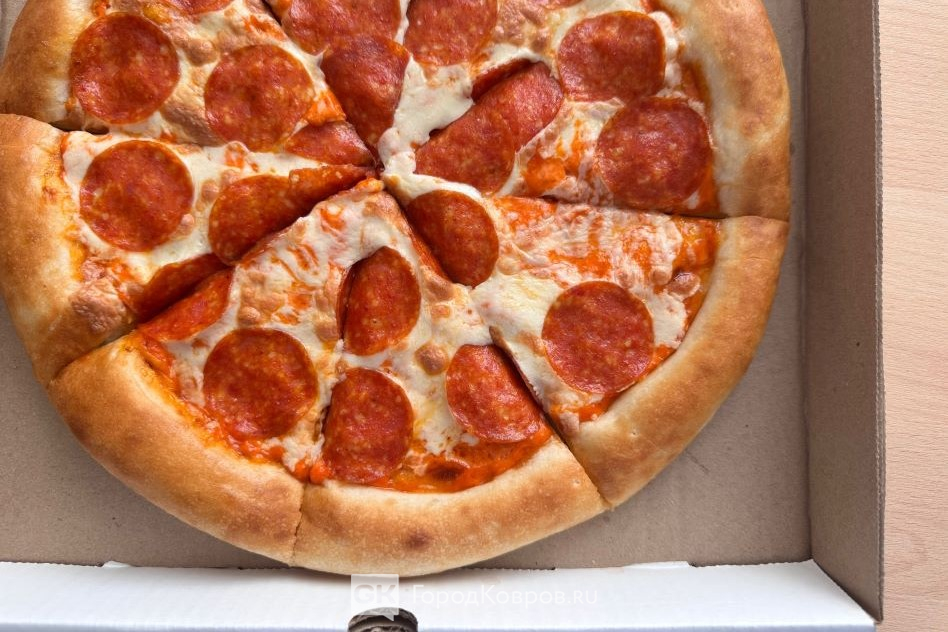 Цена. Пепперони диаметром 32 сантиметра обошлась нам в 670 рублей. Плюс доставка – 180 рублей. Бесплатная доставка начинается с 1200 рублей.