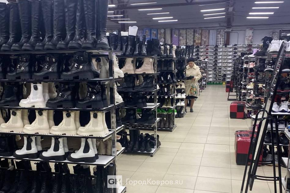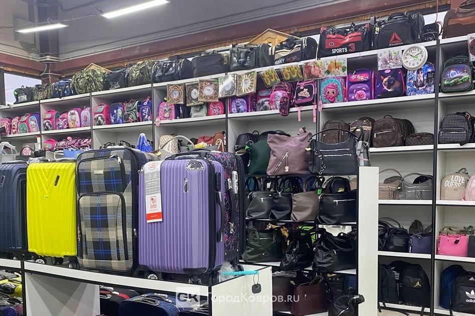 С правой стороны начинается ряд с сумок, рюкзаков и кошельков. Далее — обувь. Мужская, женская, детская — более десятка стеллажей. И есть обувь на все сезоны сразу. Для любителей купить босоножки под Новый год место самое подходящее.