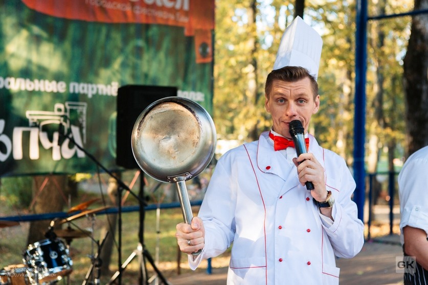 — Начнём с костюма. Это важно. Фест кулинарный, значит ведущий — это повар. Во всяком случае, по образу. Но костюм — внешне. Ну, и, конечно, шутки и конкурсы, специально для «СамБыЕл». Всё узнаете и услышите.