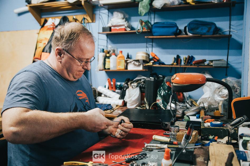 Хранят костюмы и шпаги в отдельном помещении, которое фехтовальщики называют «мастерская». В случае, если у кого-то нет своей экипировки и оружия, ему предоставят. Вот, мне, например, предоставили.