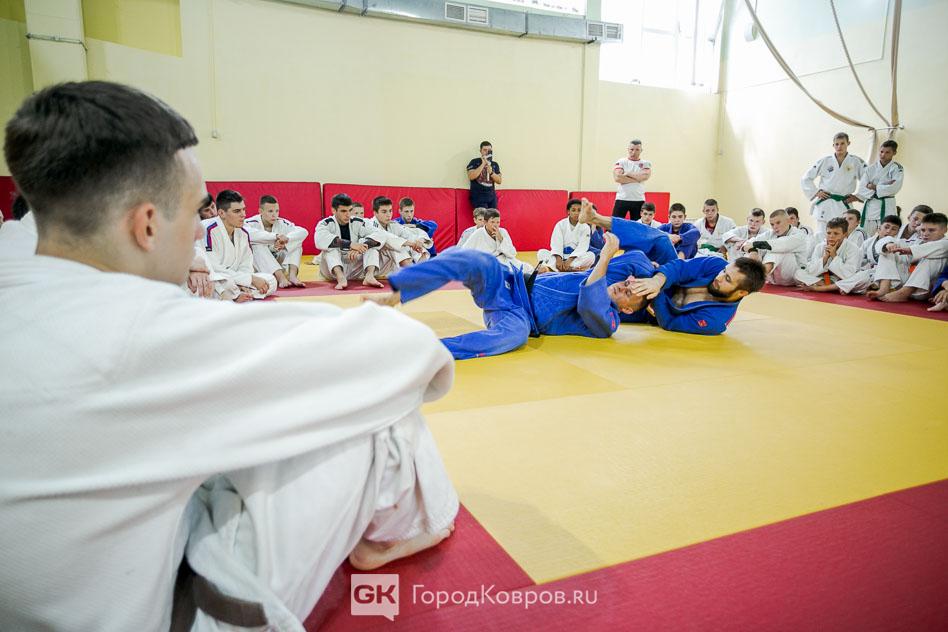 На МК в Мелехово Саркис Кочинян показывал основы ОФП и говорил с юными спортсменами о правильном питании. Ну, а Уали Куржев, конечно, показывал приёмы. Борьба была не только с воспитанниками, но и с ковровскими тренерами. За поединком с Максимом Нехорошковым, например, мальчишки следили, не отрывая глаз.
