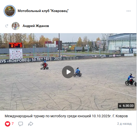 Примечательно, что репост на «запрещённую» трансляцию Андрея Жданова разместил на своей ВК-странице мотобольный клуб «Ковровец».