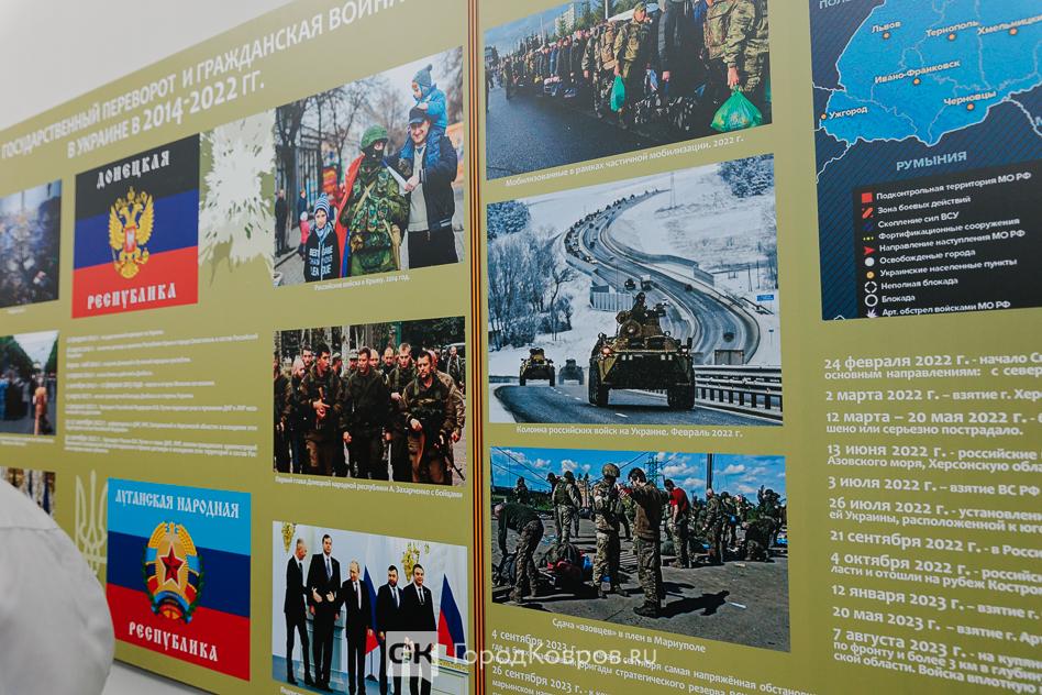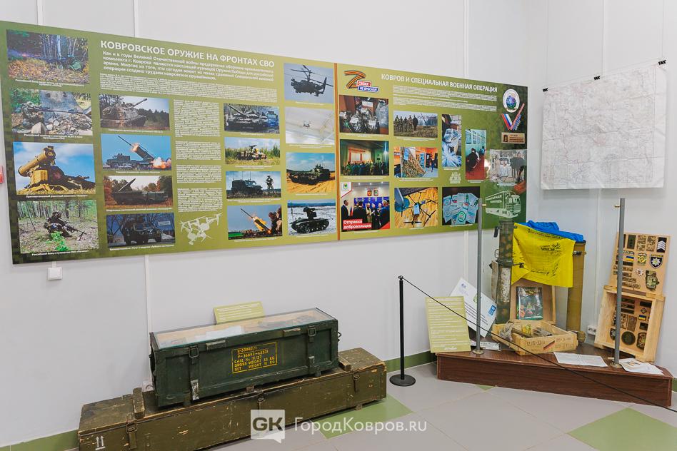 Выставка «Герои нашего времени» посвящена Специальной военной операции. На ней представлена информация об историческом единстве русского и украинского народов, построенная на цитатах президента РФ В.В. Путина, хронология событий гражданской войны на Украине и Специальной военной операции. Здесь же можно узнать о роли оборонных предприятий города Воинской славы Ковров в обеспечении армии современным оружием и об основных направлениях деятельности волонтеров, помогающих фронту. Экспонаты для выставки предоставлены ковровским реконструктором Алексеем Стрижовым, коллекционером и реконструктором, участником Специальной военной операции, Николаем Тубаевым, активистами ВРООУБД «ВОИН» и ГООВ «Ковровское боевое братство». Среди них можно увидеть личные вещи участников СВО, различные элементы снаряжения и вооружения, как российского, так и трофейного.
