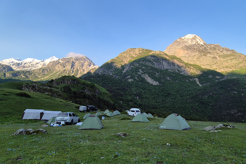 Прилетаем за день раньше тура, гуляем по Пятигорску, ужин в ресторане, ночуем в отеле. Утром за нами приезжают ребята из турагенства. К вечеру на машинах добираемся до лагеря, где ставим палатки и шатры. От этого места уже выезжаем либо пешком добираемся до локаций. По плану 4 ночи в палатках, пятая в отеле.