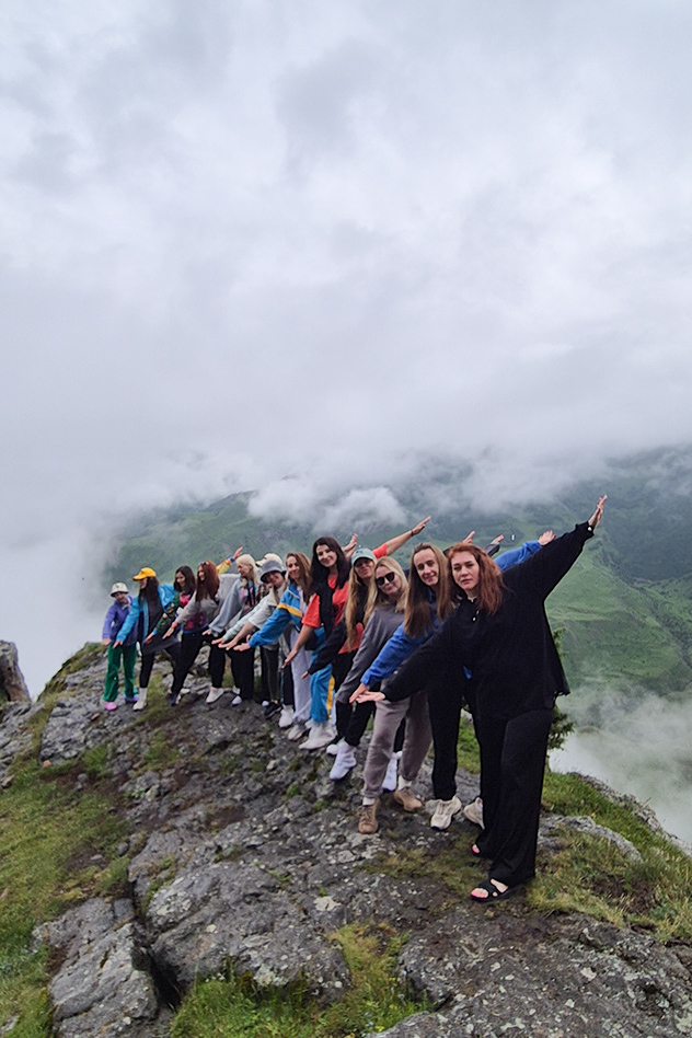 Кто-то приходит по сарафанному радио, посоветовали; кто-то едет с мамой; кто-то просто знакомый или клиенты решили за компанию. Ковров, Ростов, Волгоград, Москва. Девушки объединились со многих уголков России в одну дружную компанию. Мы стали одной большой семьей. Семьей, которая любит горы!