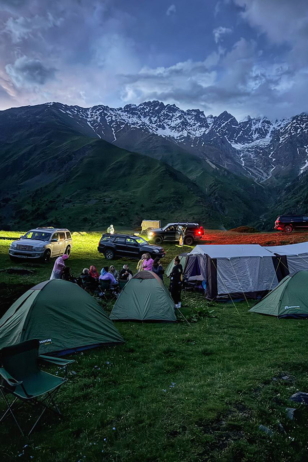Всегда приезжаем налегке, с одним лишь рюкзаком вещей и предметами личной гигиены, первой необходимости. Передвигаемся на машинах, палатки, спальники, мангал и холодильники, всё ребята проверяют и тщательно готовят к каждому туру. Про питание можно рассказывать вечно.