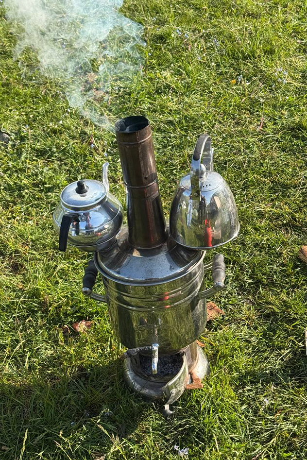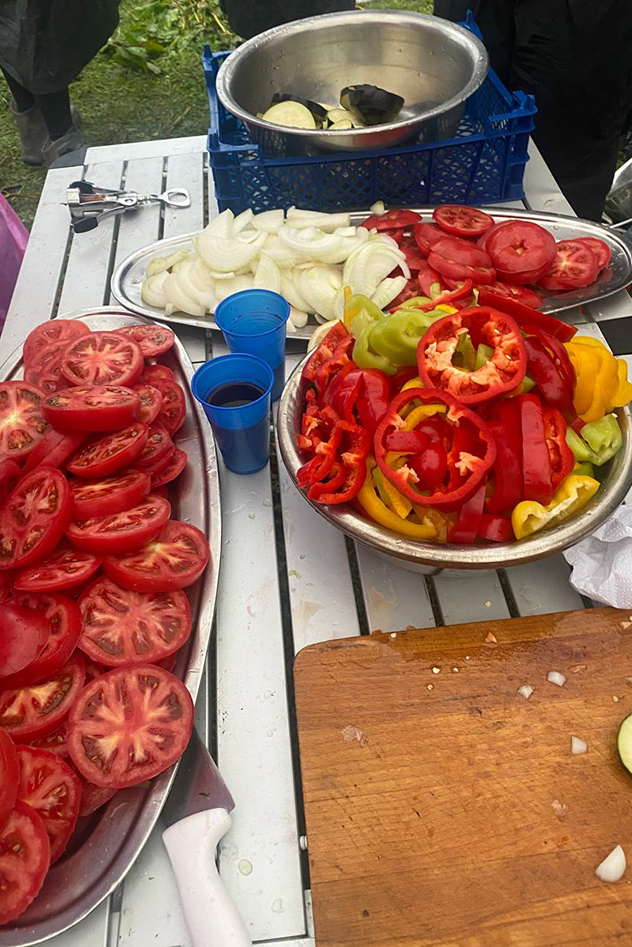 У нас есть ритуал варить по утрам кофе в турке на газовой горелке и любоваться пейзажами. Пьем кофе, едим сушки. В горах очень вкусно! Долма, плов, шашлыки, жаренные шампиньоны, сардельки из кабана. На костре жарим сыр. Заказываем этот сыр даже домой, в Ковров, привозят без проблем.