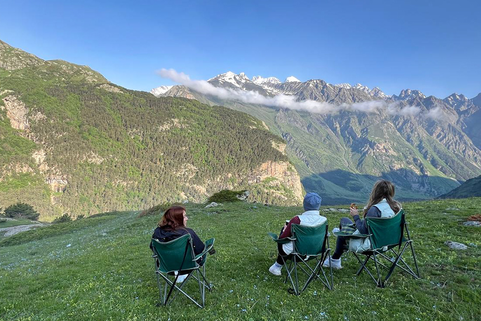 В этот раз жили в ущелье Уштулу, Кабардино-Балкария, на высоте 2 тысячи метров. Высота, разреженный воздух совсем не чувствуются. Дышится и спится в горах прекрасно! Отличный способ перезагрузиться, проветрить голову, отдохнуть от городской суеты, без сотовой связи. Поистине смелое приключение взамен привычному комфорту.