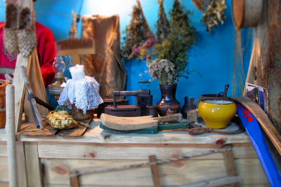 Выставка интерактивная, поэтому все предметы можно потрогать и почувствовать, как ими пользовались наши предки.